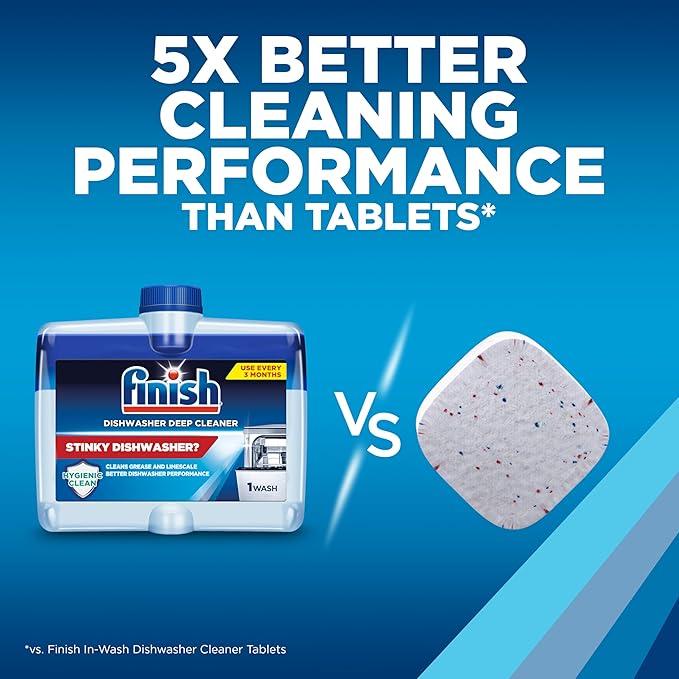 • 5X MORE CLEANING PERFORMANCE: Finish dishwasher cleaners have 5X more cleaning performance than dishwasher cleaner tablets.