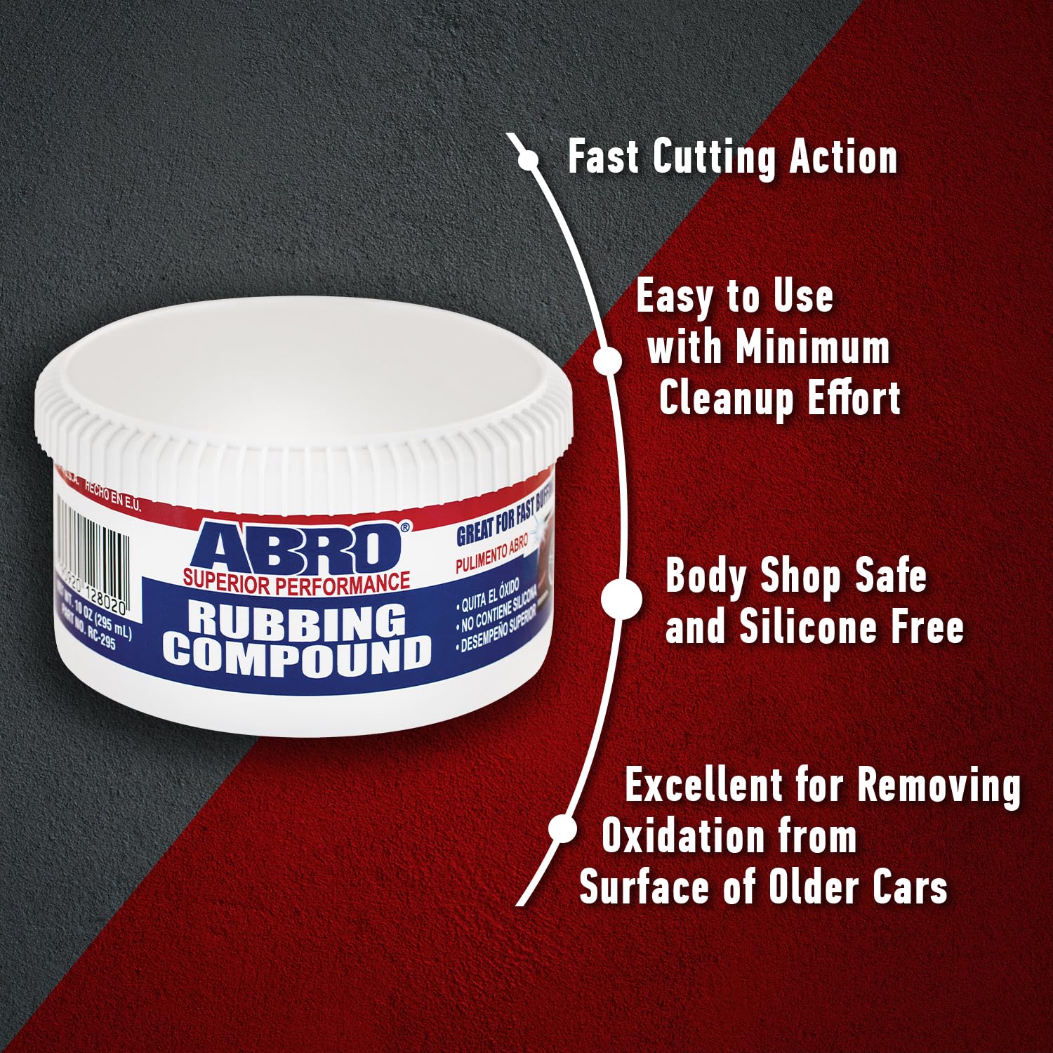 ABRO Superior Performance Rubbing Compound, 10 oz., Buffing Compound for Oxidized Finishes, Smooth, Reflect, Clean