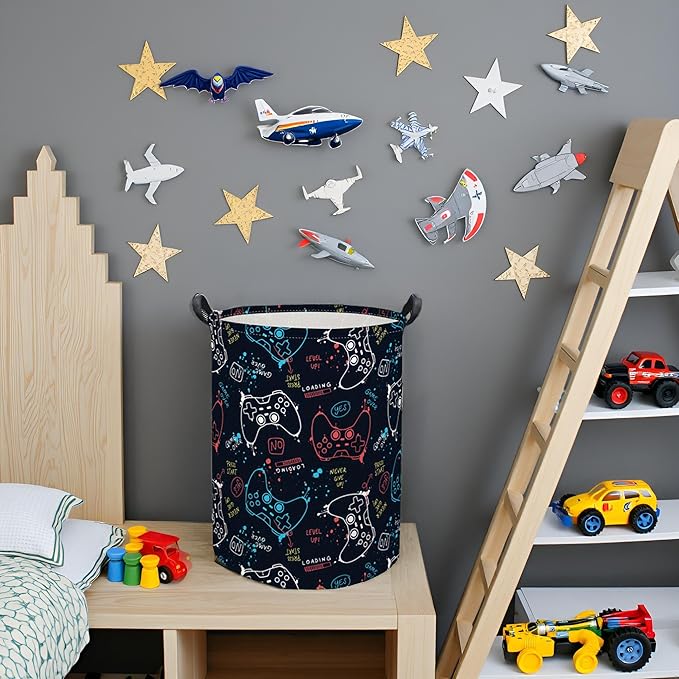 HIYAGON Game Laundry Basket Boys Kids Baby Laundry Hamper Dirty Clothes Organizer Toy Storage Bin Nursery Hamper for Bedroom Room Decor(Game)